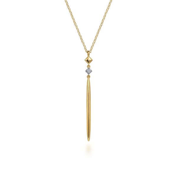 14K Yellow Gold Diamond Pendant Drop Necklace Image 2 J.A. Jewelers & Company, Inc. FARMINGTON, NM