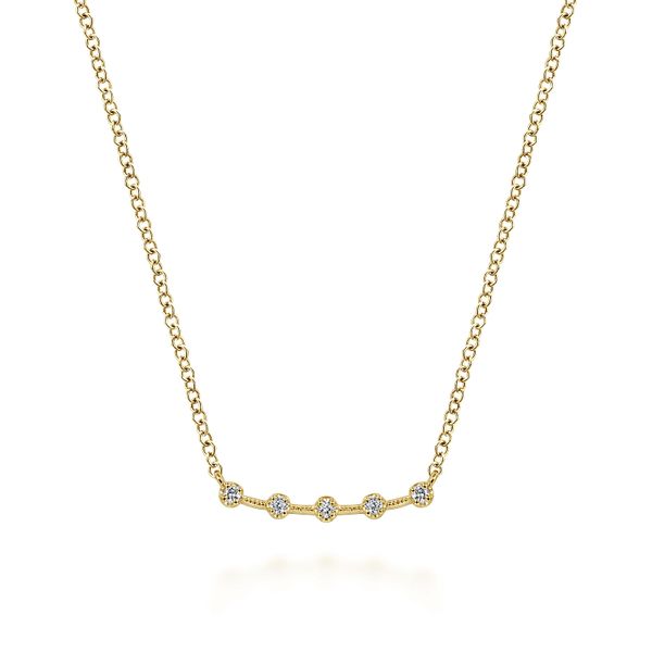 14K Yellow Gold Diamond Stations Curved Bar Necklace J.A. Jewelers & Company, Inc. FARMINGTON, NM
