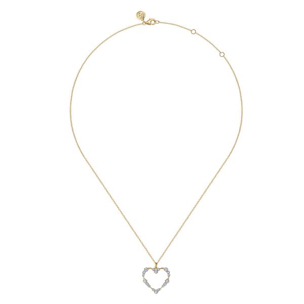 14K Yellow Gold Graduated Diamond Station Heart Pendant Necklace Image 2 J.A. Jewelers & Company, Inc. FARMINGTON, NM