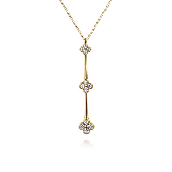14K Yellow Gold Graduating Diamond Cluster Vertical Bar Necklace Image 2 J.A. Jewelers & Company, Inc. FARMINGTON, NM