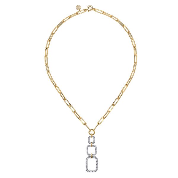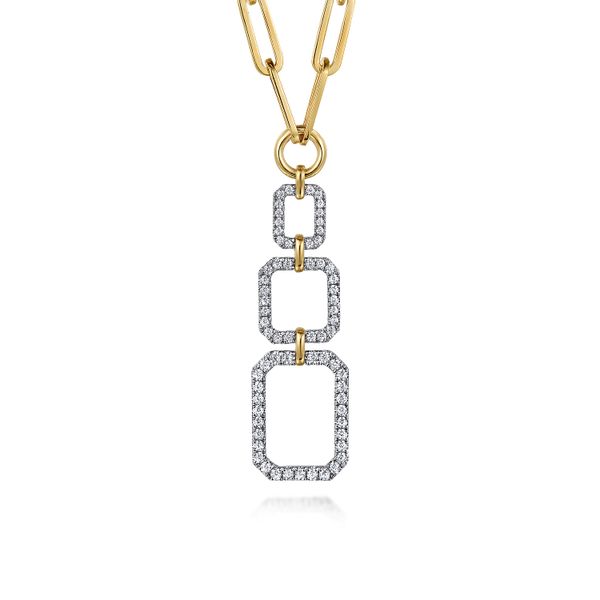 14K Yellow-White Chain Necklace with Geometric Pave Diamond Pendant J.A. Jewelers & Company, Inc. FARMINGTON, NM