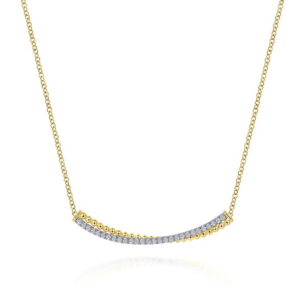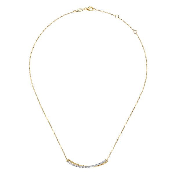 14K Yellow-White Gold Bujukan and Diamond Curved Bar Necklace J.A. Jewelers & Company, Inc. FARMINGTON, NM