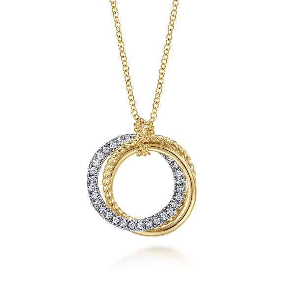 14K Yellow-White Gold Diamond Pave and Twisted Rope Interlocking Circles Necklace J.A. Jewelers & Company, Inc. FARMINGTON, NM