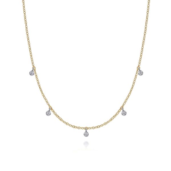14K Yellow-White Gold Diamond Stations Droplet Necklace J.A. Jewelers & Company, Inc. FARMINGTON, NM