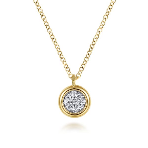 14K Yellow-White Gold Round Pave Diamond Cluster Pendant Necklace with Bezel Frame J.A. Jewelers & Company, Inc. FARMINGTON, NM