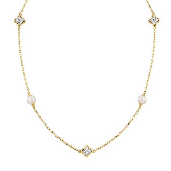 14Kt Yellow Gold Diamond 1/6Ctw & Pearl Necklace J.A. Jewelers & Company, Inc. FARMINGTON, NM