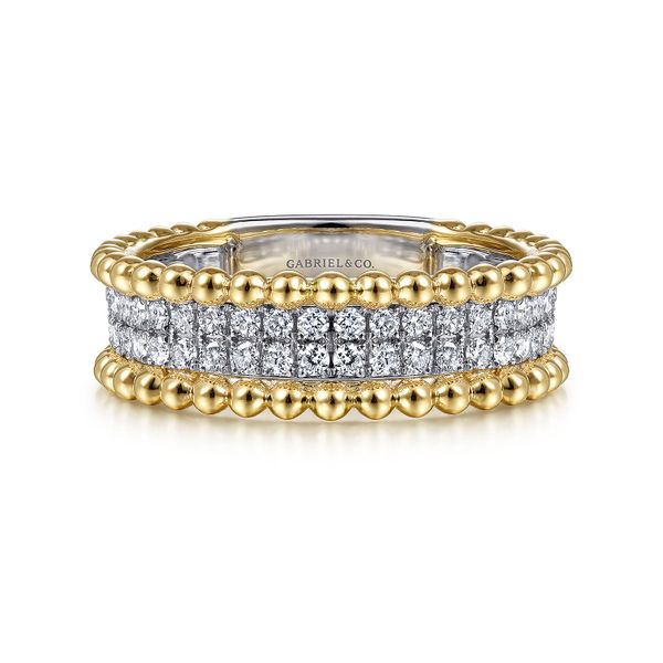 14K White-Yellow Gold Three Row Diamond and Bujukan Bead Ring Image 2 J.A. Jewelers & Company, Inc. FARMINGTON, NM