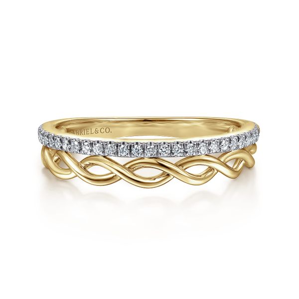 14K Yellow Gold Braided Metal and Diamond Row Ring Image 2 J.A. Jewelers & Company, Inc. FARMINGTON, NM