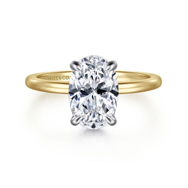 14K White and Yellow Gold Hidden Halo Oval Diamond Engagement Ring