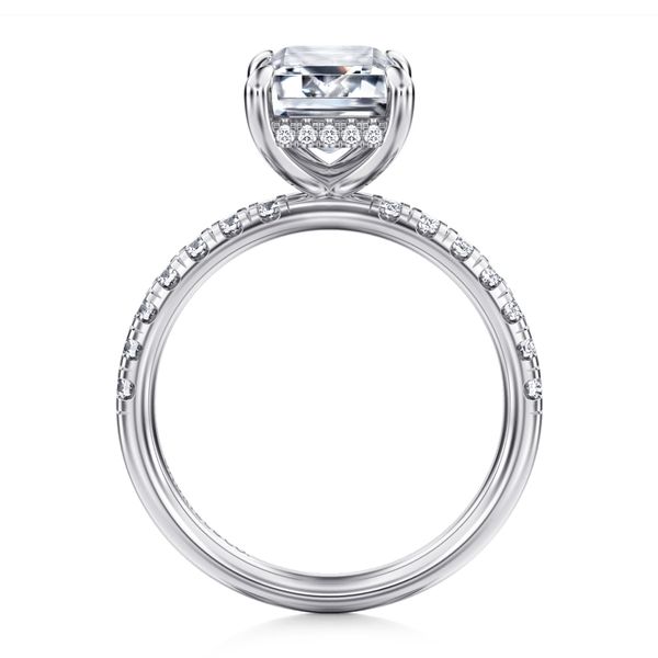 14K White Gold Emerald Cut Hidden Halo Diamond Engagement Ring