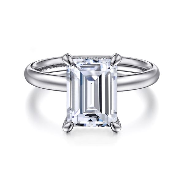 14K White Gold Emerald Cut Hidden Halo Diamond Engagement Ring