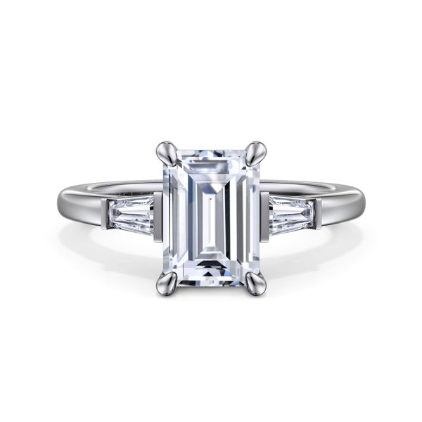 3. 14K White Gold Emerald Cut Three Stone Diamond Engagement Ring