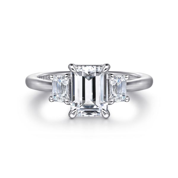 14K White Gold Emerald Cut Three Stone Diamond Engagement Ring