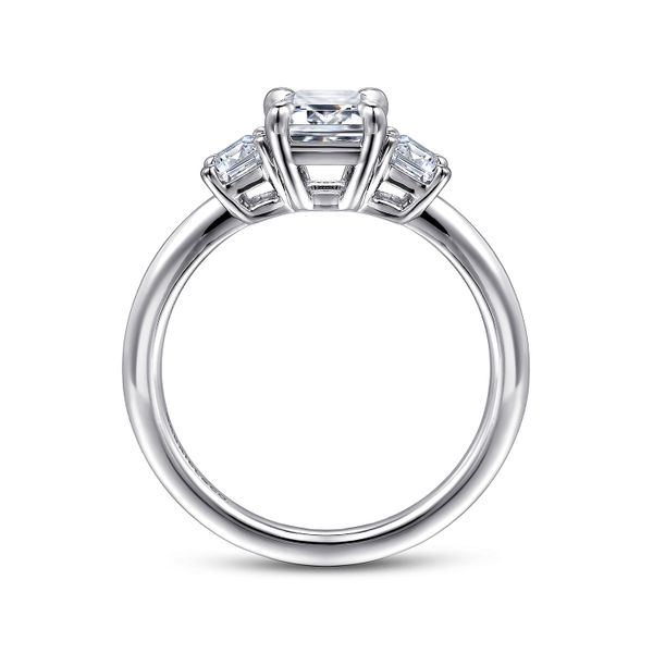 3. 14K White Gold Emerald Cut Three Stone Diamond Engagement Ring
