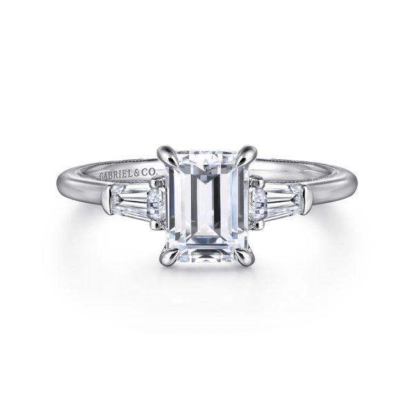 3. 14K White Gold Emerald Cut Three Stone Diamond Engagement Ring