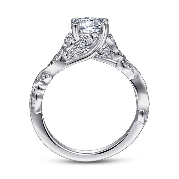 3. 14K White Gold Floral Round Diamond Engagement Ring
