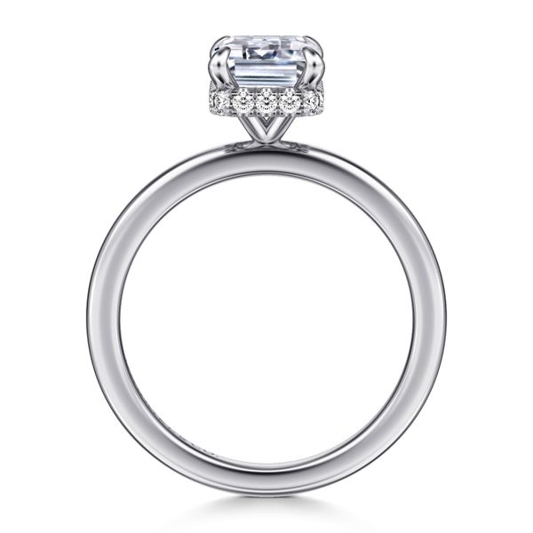 14K White Gold Hidden Halo Emerald Cut Diamond Engagement Ring