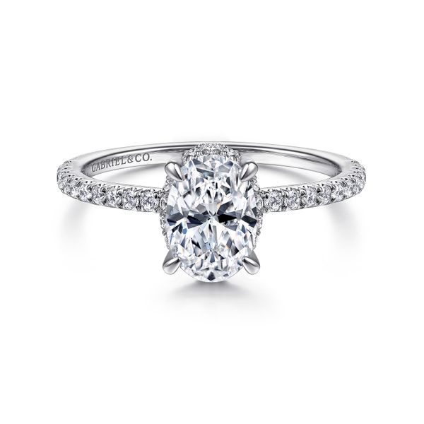 14K White Gold Hidden Halo Oval Diamond Engagement Ring