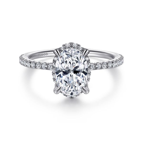 14K White Gold Hidden Halo Oval Diamond Engagement Ring