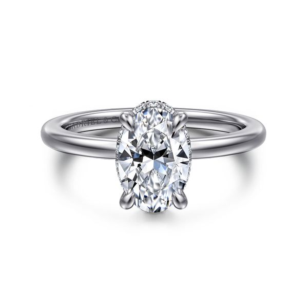 14K White Gold Hidden Halo Oval Diamond Engagement Ring
