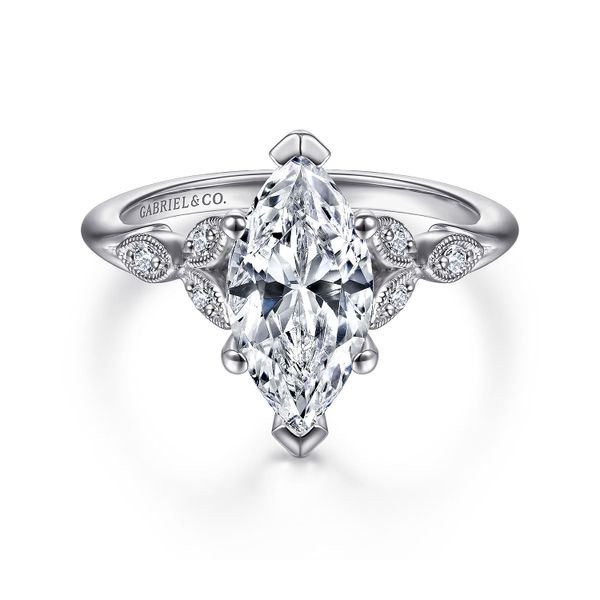 14K White Gold Marquise Shape Diamond Engagement Ring