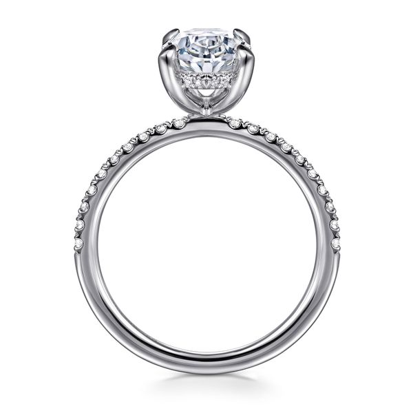 3. 14K White Gold Oval Hidden Halo Diamond and Engagement Ring