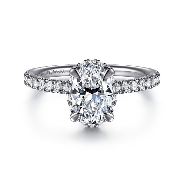 14K White Gold Oval Hidden Halo Diamond Engagement Ring