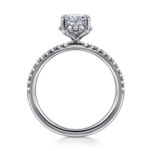 3. 14K White Gold Oval Hidden Halo Diamond Engagement Ring