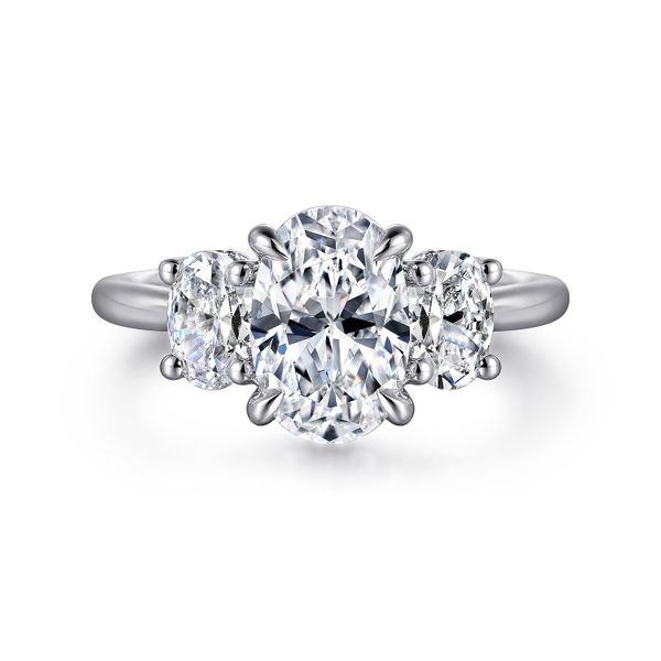 3. 14K White Gold Oval Three Stone Diamond Engagement Ring