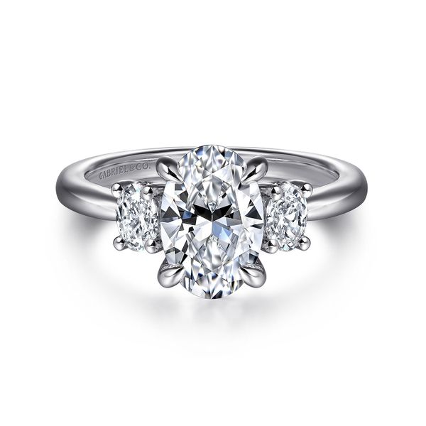 3. 14K White Gold Oval Three Stone Diamond Engagement Ring
