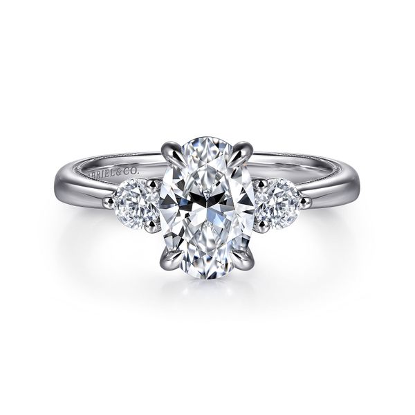 3. 14K White Gold Oval Three Stone Diamond Engagement Ring