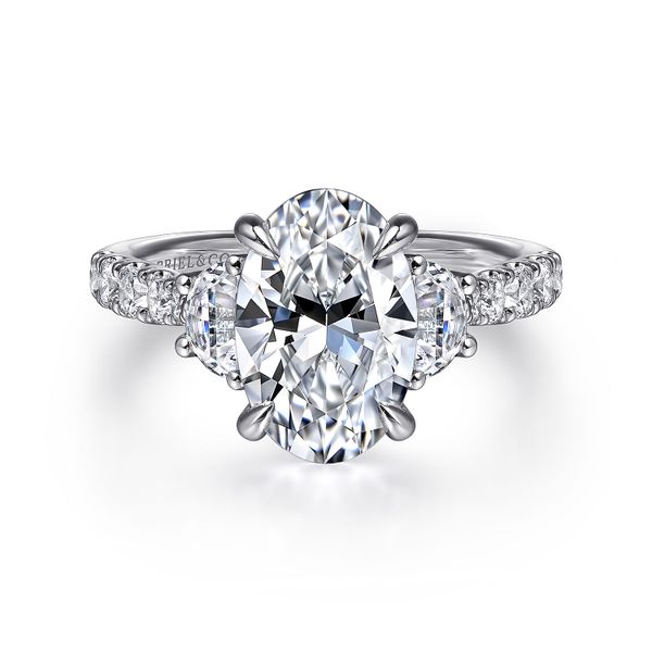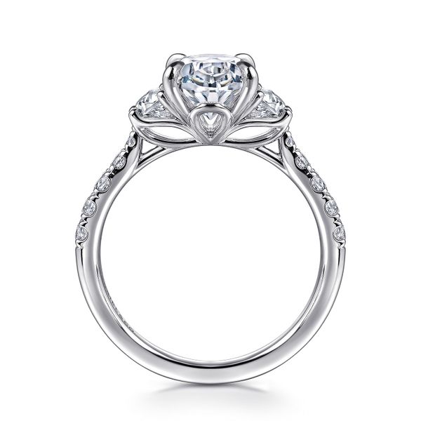 3. 14K White Gold Oval Three Stone Lotus Diamond Engagement Ring