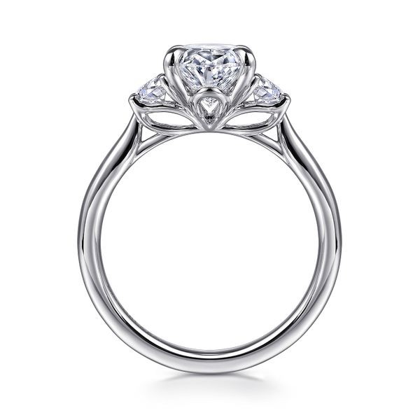 3. 14K White Gold Oval Three Stone Lotus Diamond Engagement Ring
