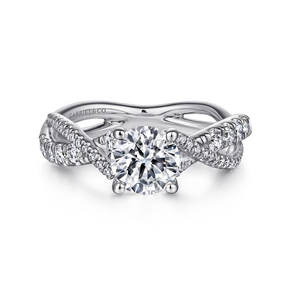 3. 14K White Gold Round Diamond Twisted Engagement Ring