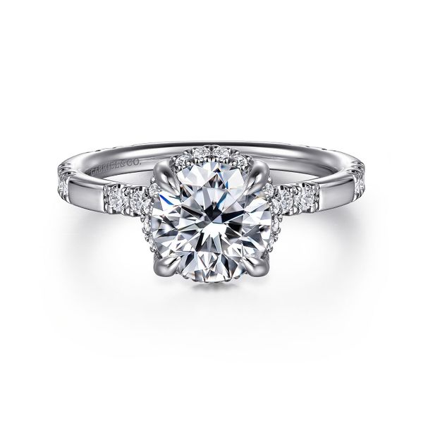 14K White Gold Round Hidden Halo Diamond Engagement Ring