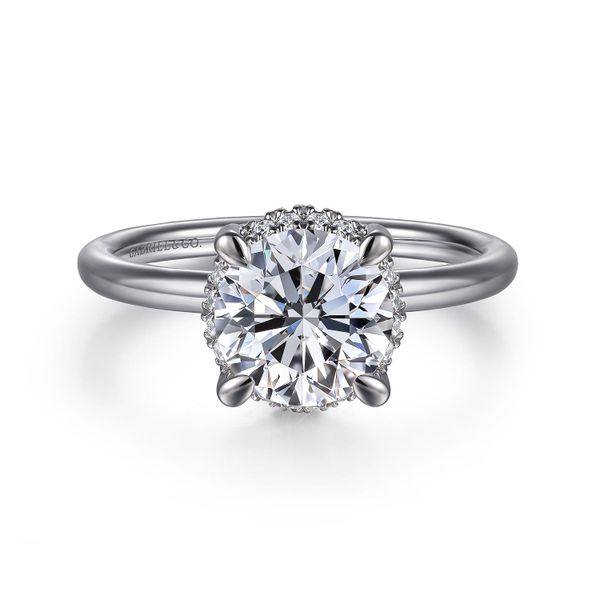 14K White Gold Round Hidden Halo Diamond Engagement Ring
