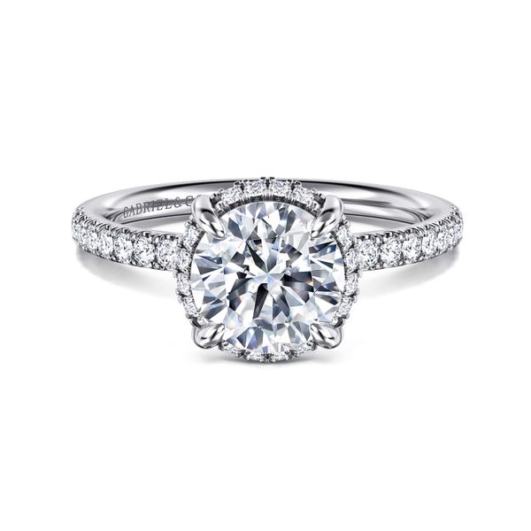 14K White Gold Round Hidden Halo Diamond Engagement Ring