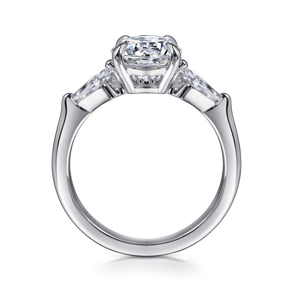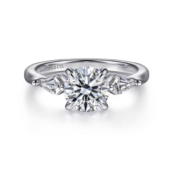 3. 14K White Gold Round Three Stone Diamond Engagement Ring with Kite Side Stones