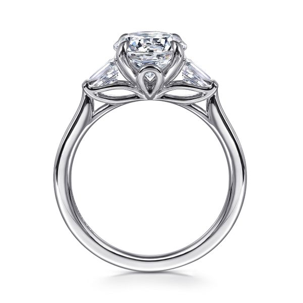 14K White Gold Round Three Stone Lotus Diamond Engagement Ring