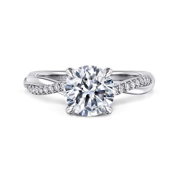 14K White Gold Round Twisted Diamond Engagement Ring
