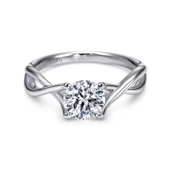 14K White Gold Round Twisted Diamond Engagement Ring