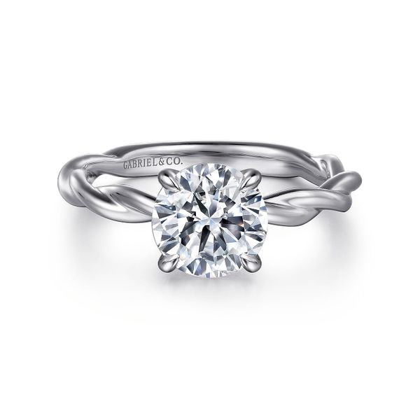 14K White Gold Twisted Round Diamond Engagement Ring