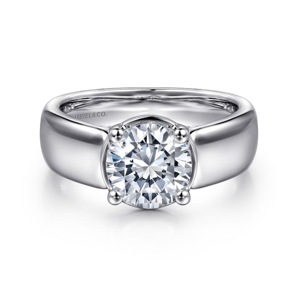 14K White Gold Wide Band Round Diamond Engagement Ring
