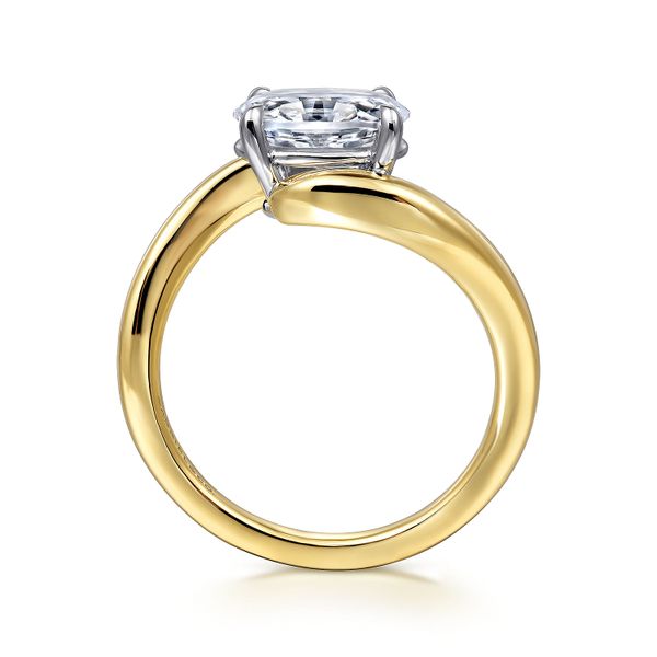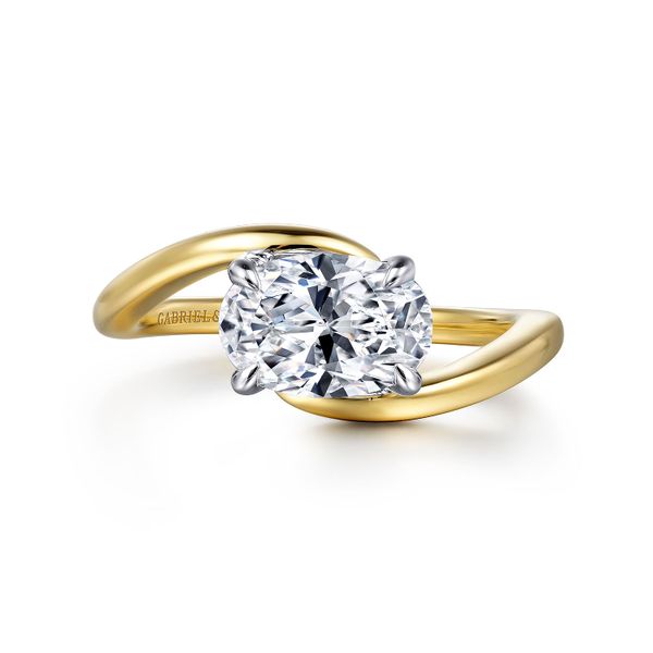 3. 14K White-Yellow Gold Bypass Oval Diamond Engagement Ring