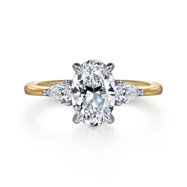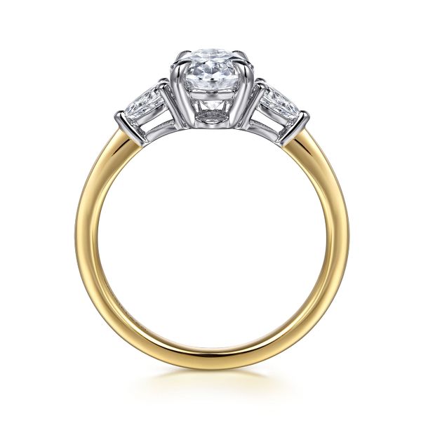 3. 14K White-Yellow Gold Oval Three Stone Diamond Engagement Ring