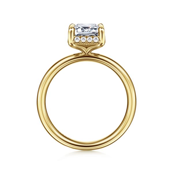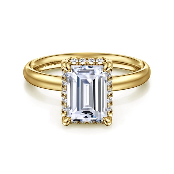 14K Yellow Gold Emerald Cut Hidden Halo Diamond Engagement Ring