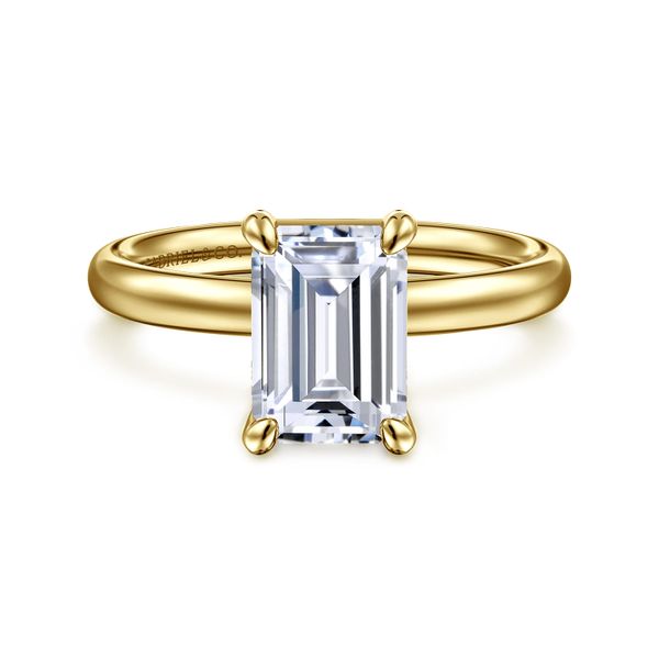14K Yellow Gold Emerald Cut Solitaire Diamond Engagement Ring