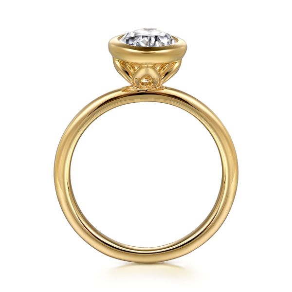 3. 14K Yellow Gold Oval Bezel Set Diamond Engagement Ring