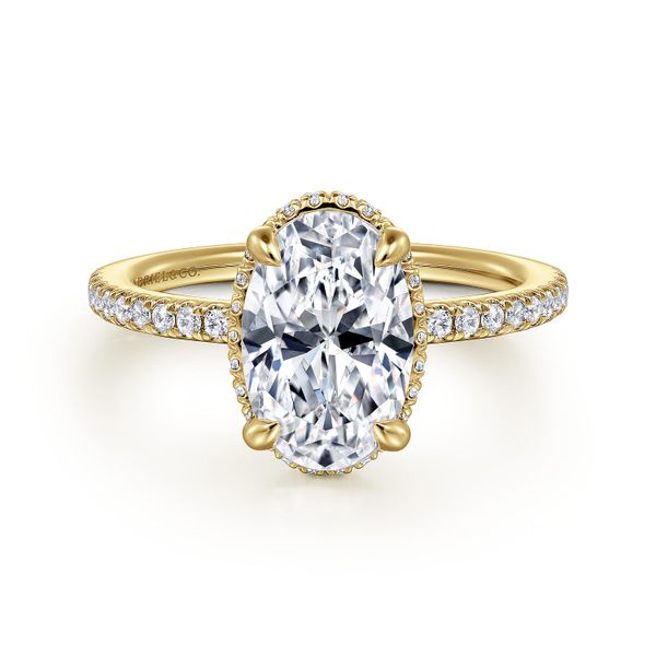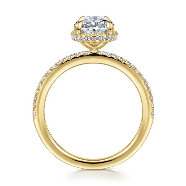 3. 14K Yellow Gold Oval Cut Hidden Halo Diamond Engagement Ring