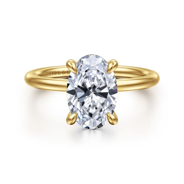14K Yellow Gold Oval Hidden Halo Diamond Engagement Ring